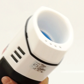 見た目は懐中電灯のようですが、挿入口はヴァギナを忠実に再現しています。元々外人仕様でサイズは大きめなものの、底にある蓋を調整してエアーを抜けばペニスにフィットさせることが可能です。